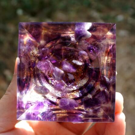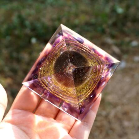 紫とゴールドの組み合わせが美しい、ピラミッドオルゴナイトです。