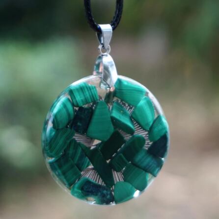マラカイトと樹脂、で作られた、高級オルゴナイトペンダントネックレスです。