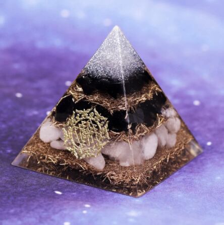 【オルゴンピラミッド】黒曜石+ホワイトクリスタル ヒーリング 瞑想 オルゴナイト【黒+白】