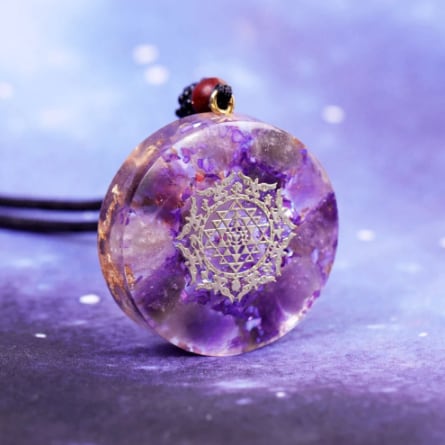 『愛の守護石』『真実の愛を守りぬく石』と呼ばれるアメジストをふんだんに使った、オルゴナイトペンダントです。