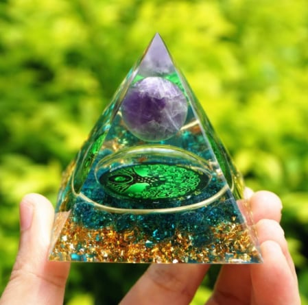 【ピラミッド型】生命の木 オルゴナイト アメジスト+ブルークォーツ プロハンドメイド【チャクラ】