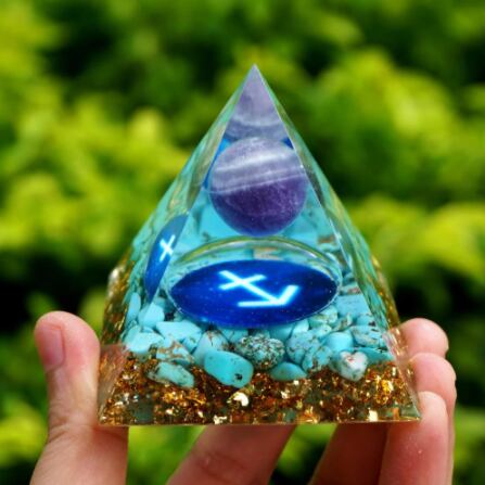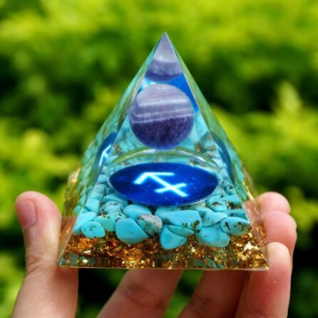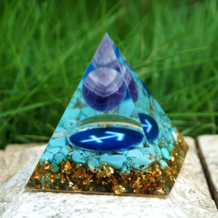 【オルゴナイト】射手座 ターコイズ+アメジスト球 ピラミッド型 星座 ヒーリング【6cm】
