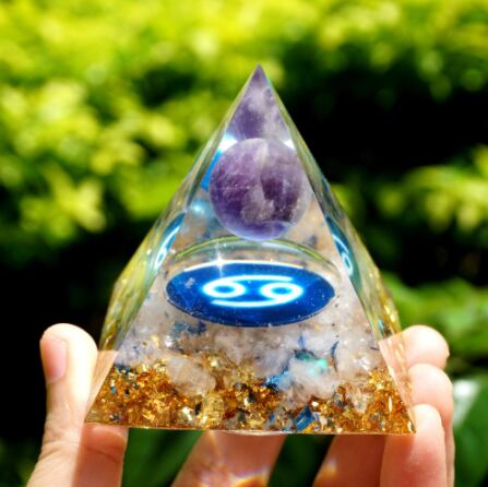 【浄化】オルゴナイト かに座 ホワイトクォーツ+アメジスト球 ピラミッド型 星座マーク 魔除け【6cm】